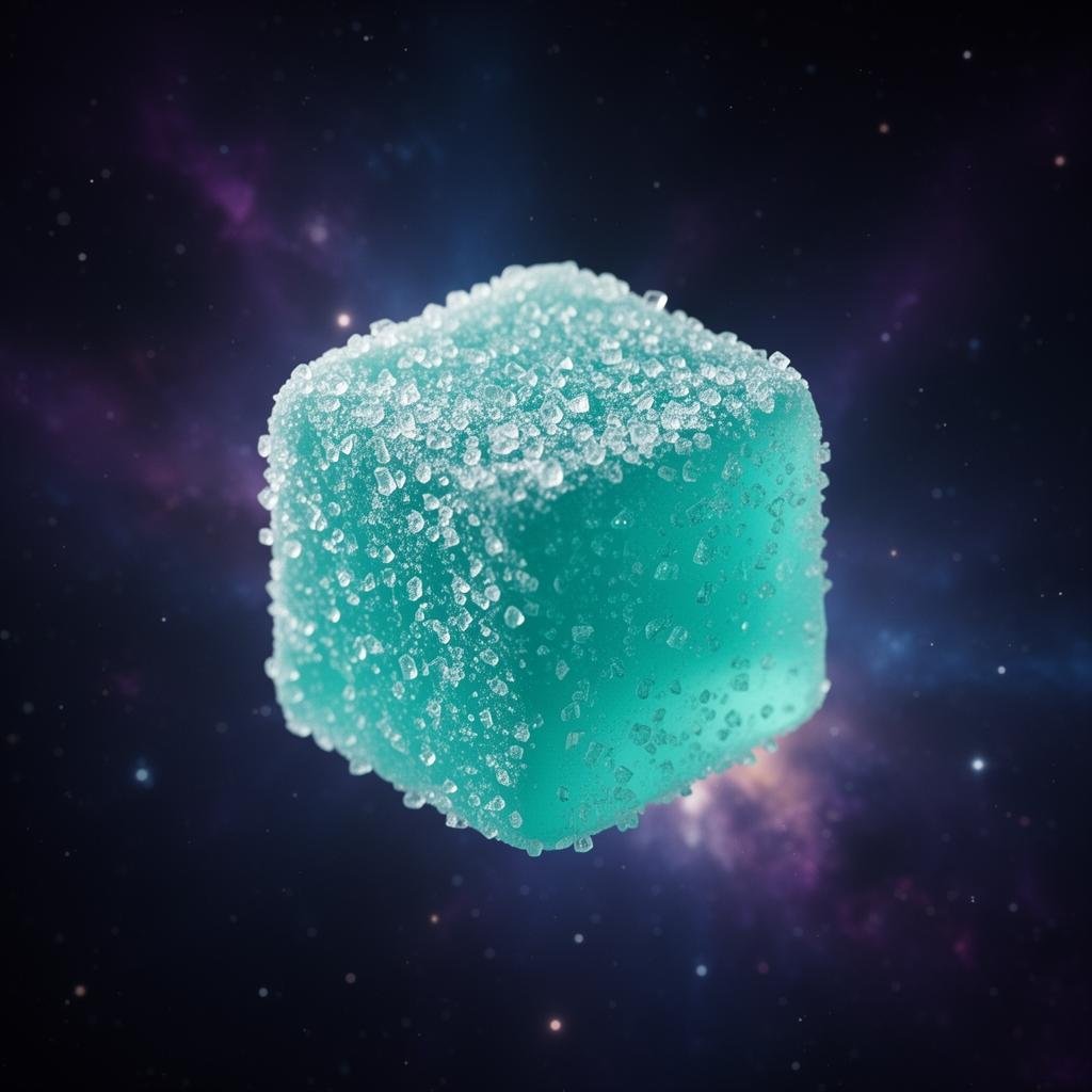 A crystalline burst of electric blue raspberry, forged in the frozen rings of Neptune. Each sugar-dusted cube pulses with an otherworldly tartness that crackles across your tongue like cosmic static.